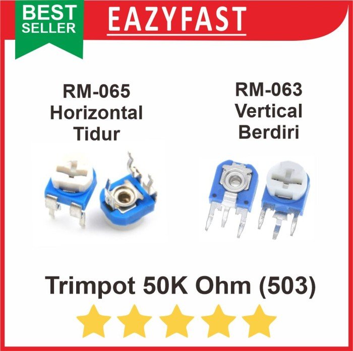 Be the first to review “Trimpot 503 R50K R 50 K Ohm Potensio Variable Resistor VR Trimmer RM” Cancel reply