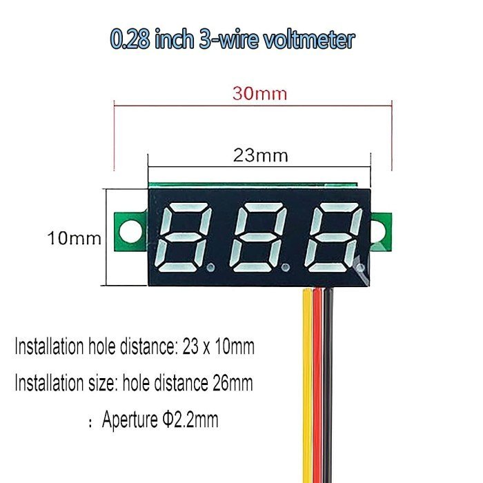 Voltmeter Digital DC 0.28″ Inch 2 Kabel Wire Volt Meter Kecil Mini